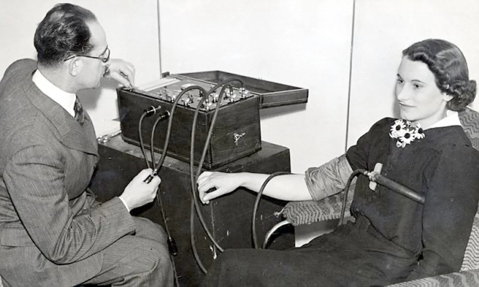 У 1913 році американський вчений Вільям Марстон запропонував метод вимірювання артеріального тиску під час допиту. Його напрацювання були використані під час Першої світової війни, а згодом — у суді.